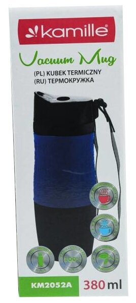 Термокружка 380 мл. из нержавеющей стали Kamille KM 2052A с TPR-вставкой и ремешком (2052A / синий) 1 250 ₽ Подробнее