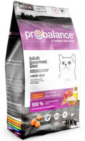 Корм сухой PROBALANCE Adult Gourmet Diet говядина и ягненок для кошек (400 г)