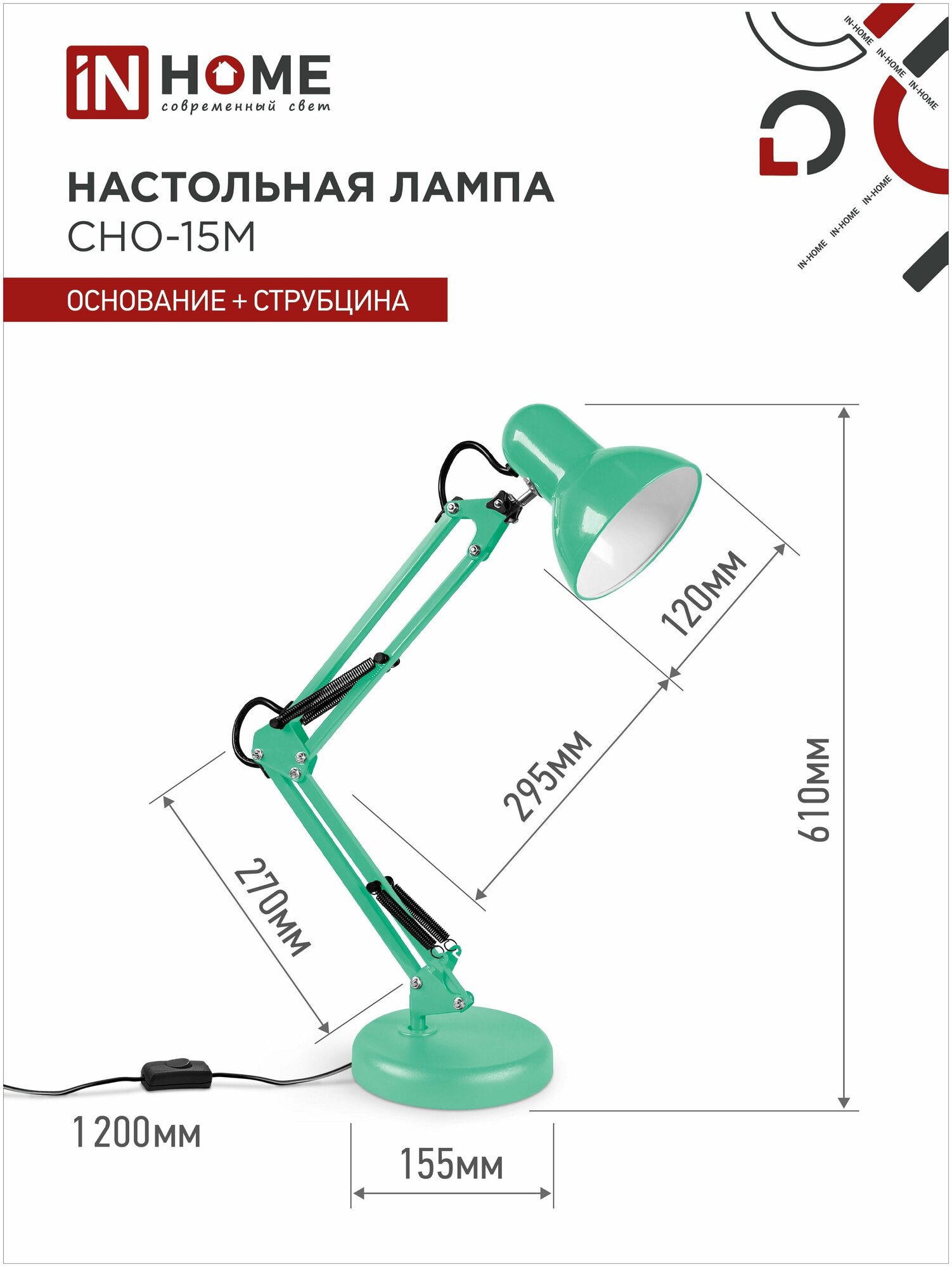 Настольные лампы Светильник настольный под лампу IN HOME СНО 15М на основании 60Вт E27 230В мятный (коробка) IN HOME