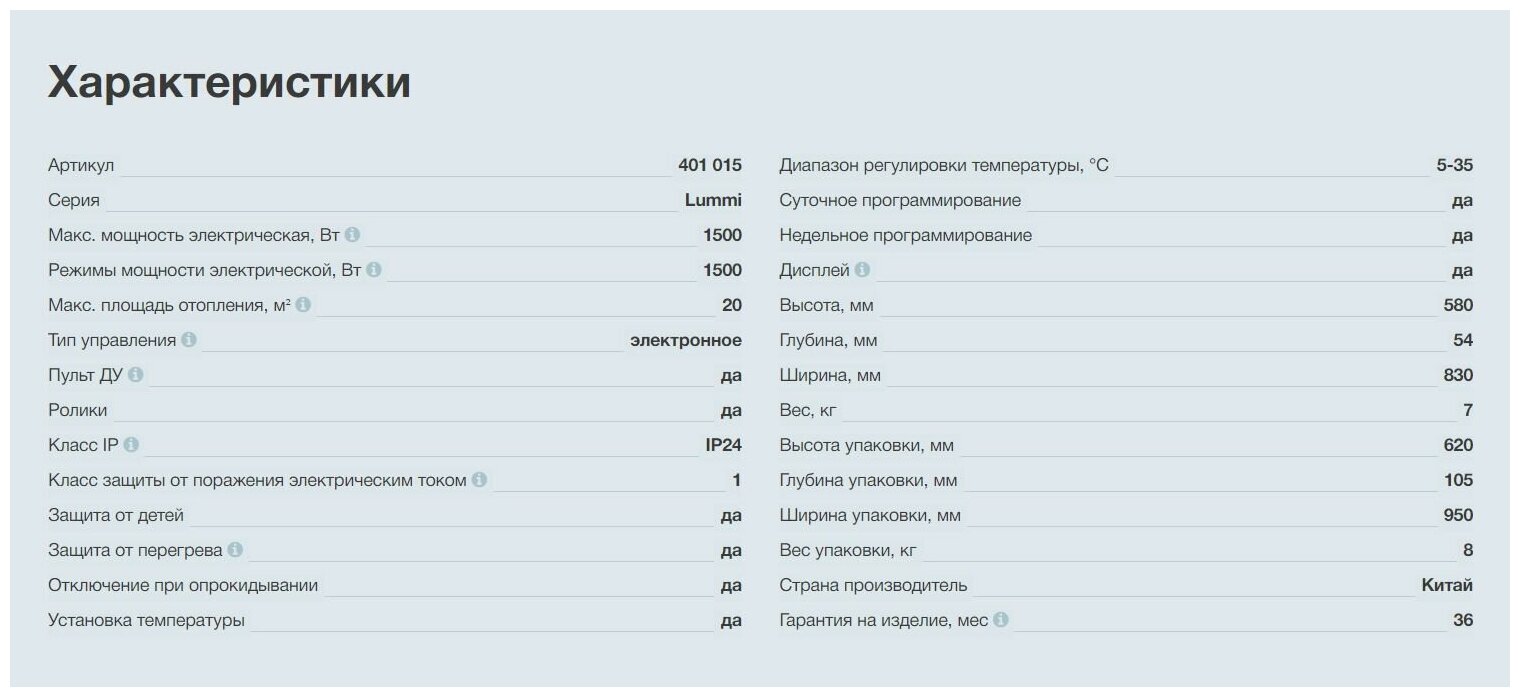| Функции | термостат / регулировка температуры / таймер отключения / термовентиляция (конвекторы) / дисплей |