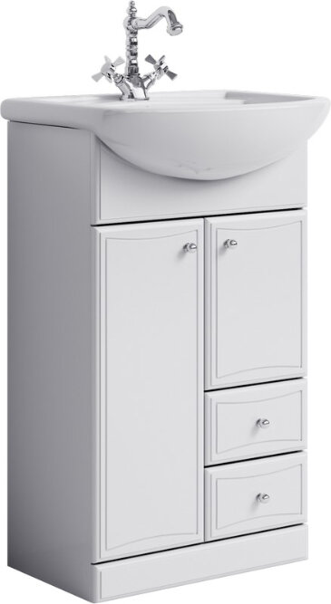 Тумба под умывальник Aqwella Барселона 55 напольная с двумя ящиками, белый Ba.01.05/2