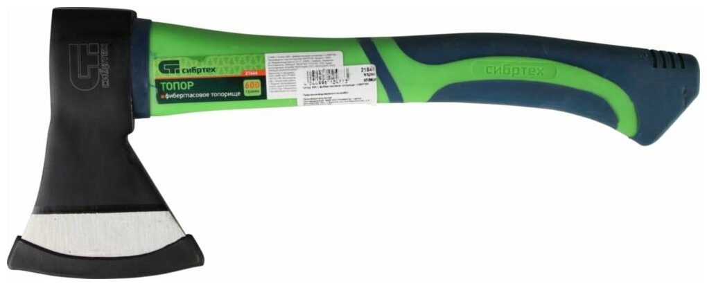 Топор, 600 г, фибергласовое топорище, синий/зеленый // Сибртех
