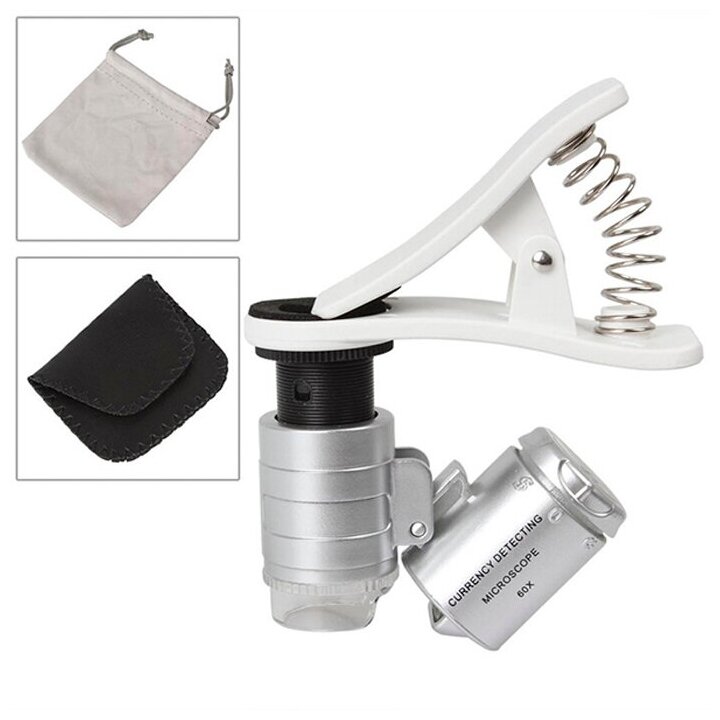 Микроскоп Микроскоп ANYSMART 60x мини, с креплением для смартфона, подсветкой (2 LED) и ультрафиолетом (9882-W)