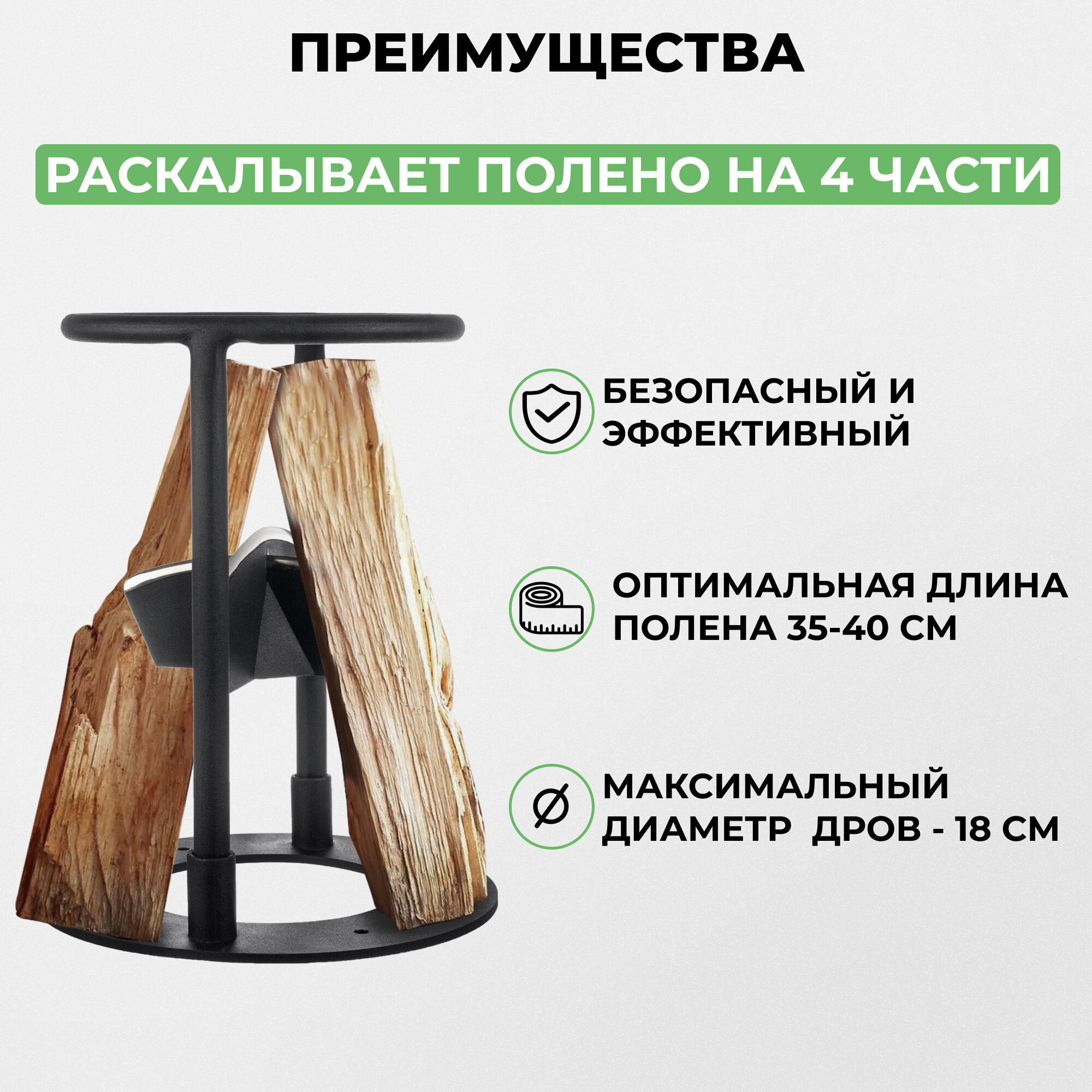 Дровокол Дровокол ручной KOLUNDROV Х4, стационарный колун для дров, для дачи и дома, рыбалки и охоты, черный