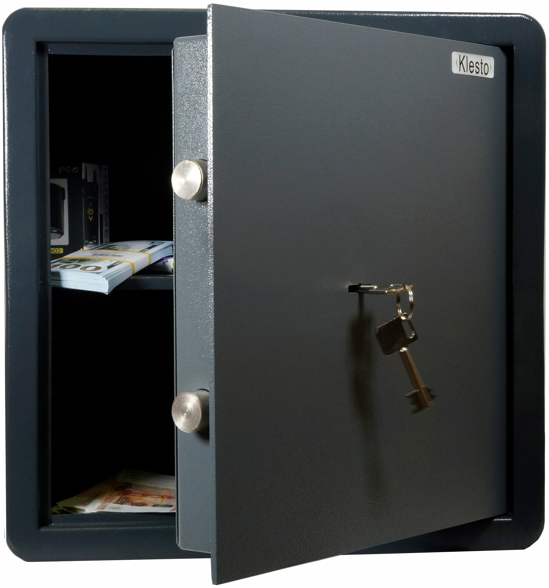 Лучшие цены. Уникальный мебельный сейф Klesto RS40K в новом дизайне и современном стиле для дома и офиса с закругленными краями станет украшением любого пространства и гармонично впишется в интерьер вашего помещения. Корпус и дверь имеют различные оттенки серого цвета. Комплектуются механическим ключевым сувальдным замком. Дополнительные элементы (папки, кэшбоксы) в комплект сейфа не входят и заказываются отдельно. Изображения товаров на сайте не могут гарантировать точную цветопередачу. Магазины в вашем городе.