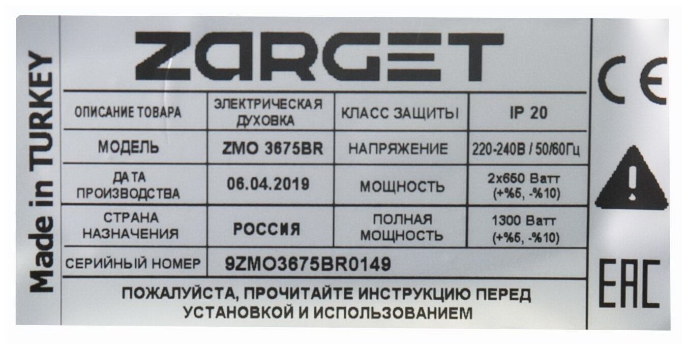Лучшие цены. 99018141698 Мини-печь ZARGET ZMO 3675BR бежевый. Магазины в вашем городе.