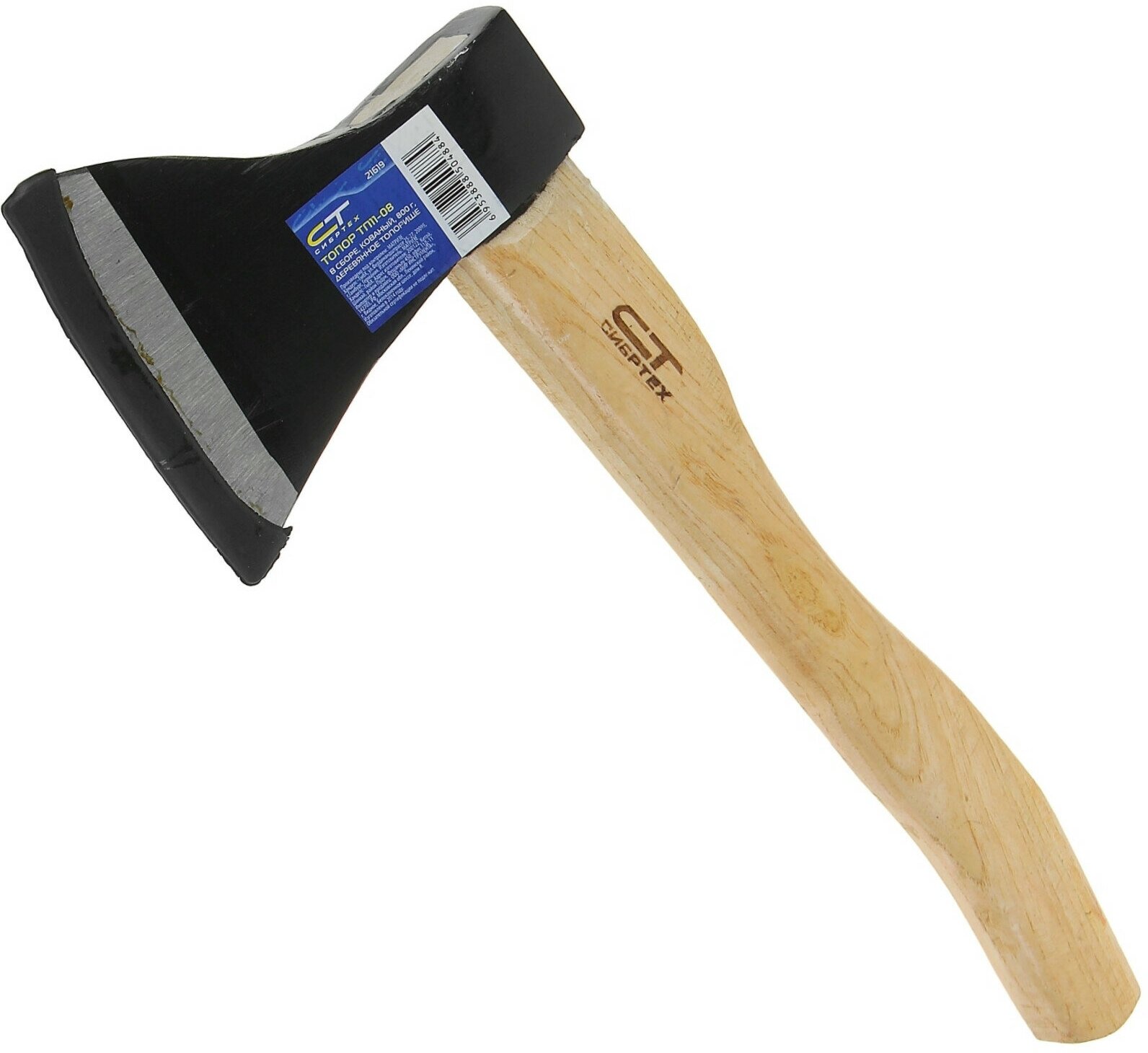 Топор ТП11-08, 800 г, в сборе, кованый, деревянное топорище, СИБРТЕХ 21619