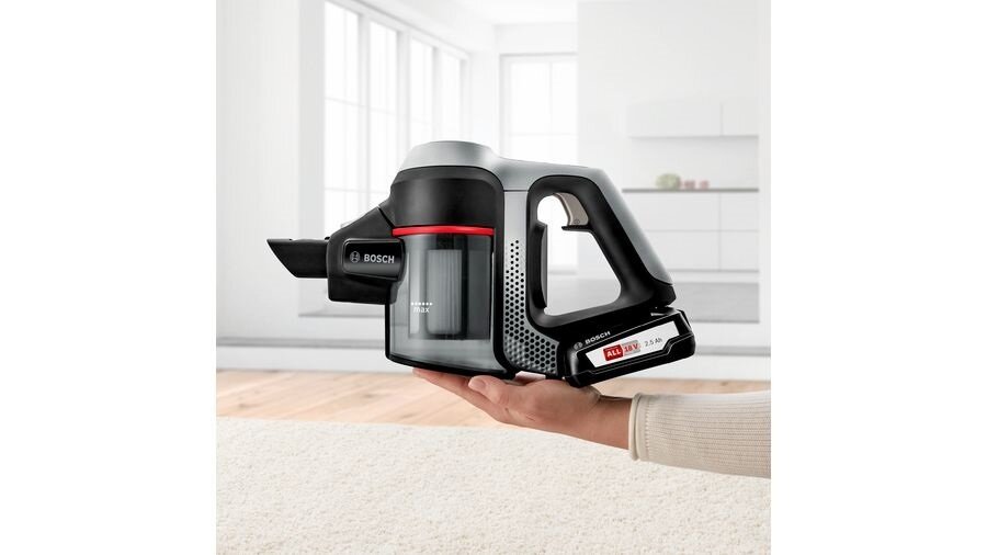 Лучшие цены. Производительность Эффективная очистка: турбощетка AllFloor Power и новейший бесщеточный двигатель DigitalSpin позволяют выполнять уборку любых напольных поверхностей. Дополнительный сменный аккумулятор в комплекте для двойного времени работы. Время работы до подзарядки: До 30 мин в обычном режиме До 25 мин в обычном режиме с моторизированной щёткой До 8 мин в турбо режиме с моторизированной щёткой Система Bosch Power for ALL. Универсальный аккумулятор для всех устройств Bosch для дома и сада. Магазины в вашем городе.