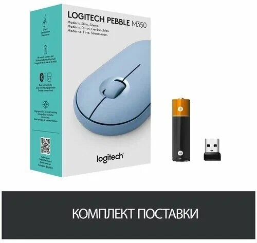 Мышь LOGITECH Pebble M350, беспроводная, оптическая, 1000 dpi, синияя
