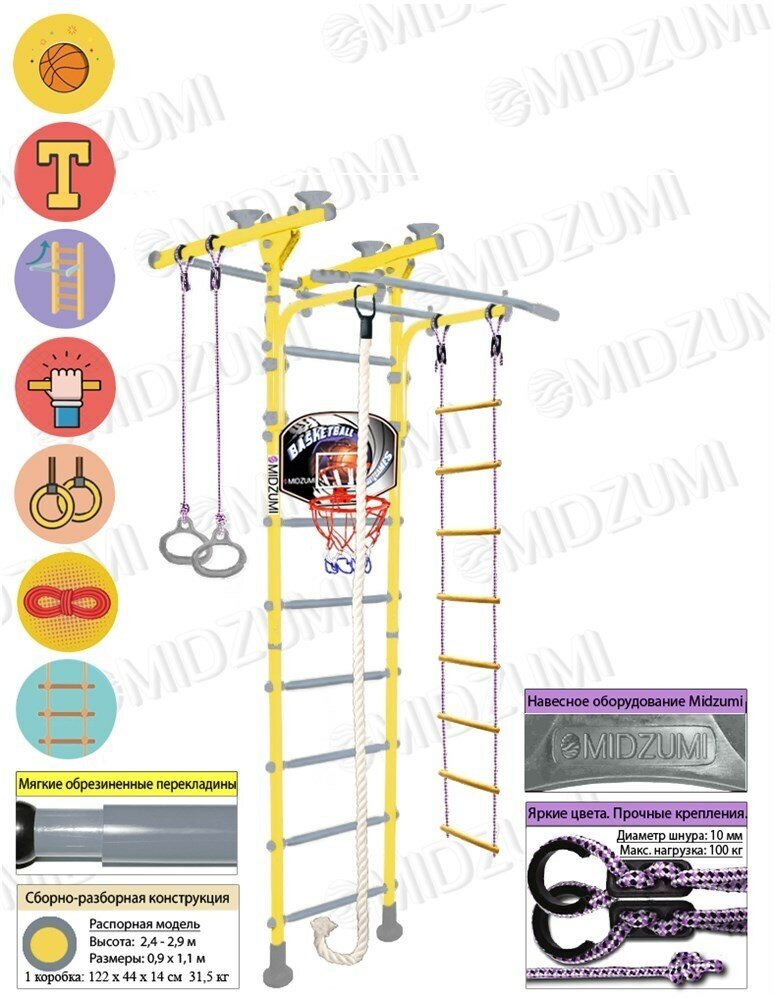 Шведская стенка Midzumi "Niji Ton Basketball Shield" спортивно-игровой комплекс Лимонный пай