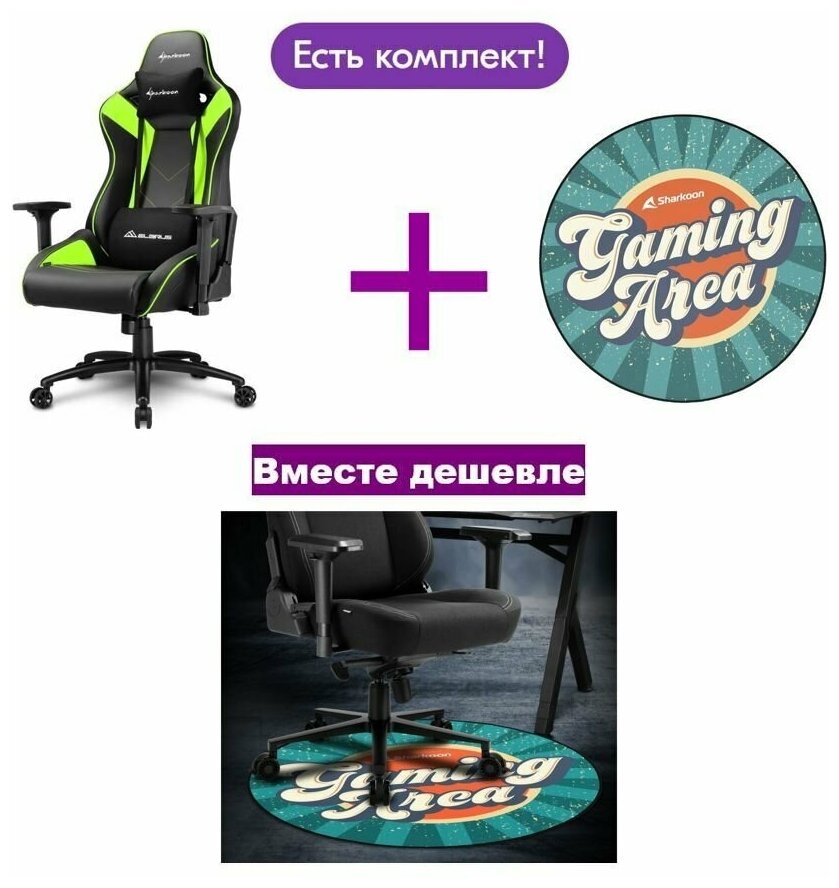 Игровое кресло Sharkoon Elbrus 3 BK/GN компьютерное, до 150 кг, синтетическая кожа, сталь, цвет: черный/зеленый