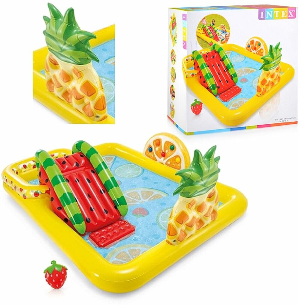 Игровой центр-бассейн 244х191х91 см, Смешные фрукты, горка, надувные фрукты, 81 кг, Intex, 57158NP