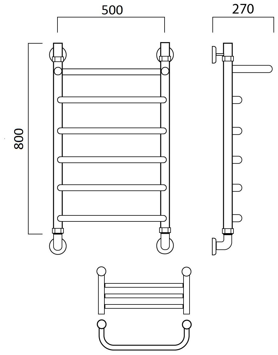 Полотенцесушитель Полотенцесушитель водяной Акванерж Скоба с полкой 800х500 мм, 5 перекладин, универсальное подключение.