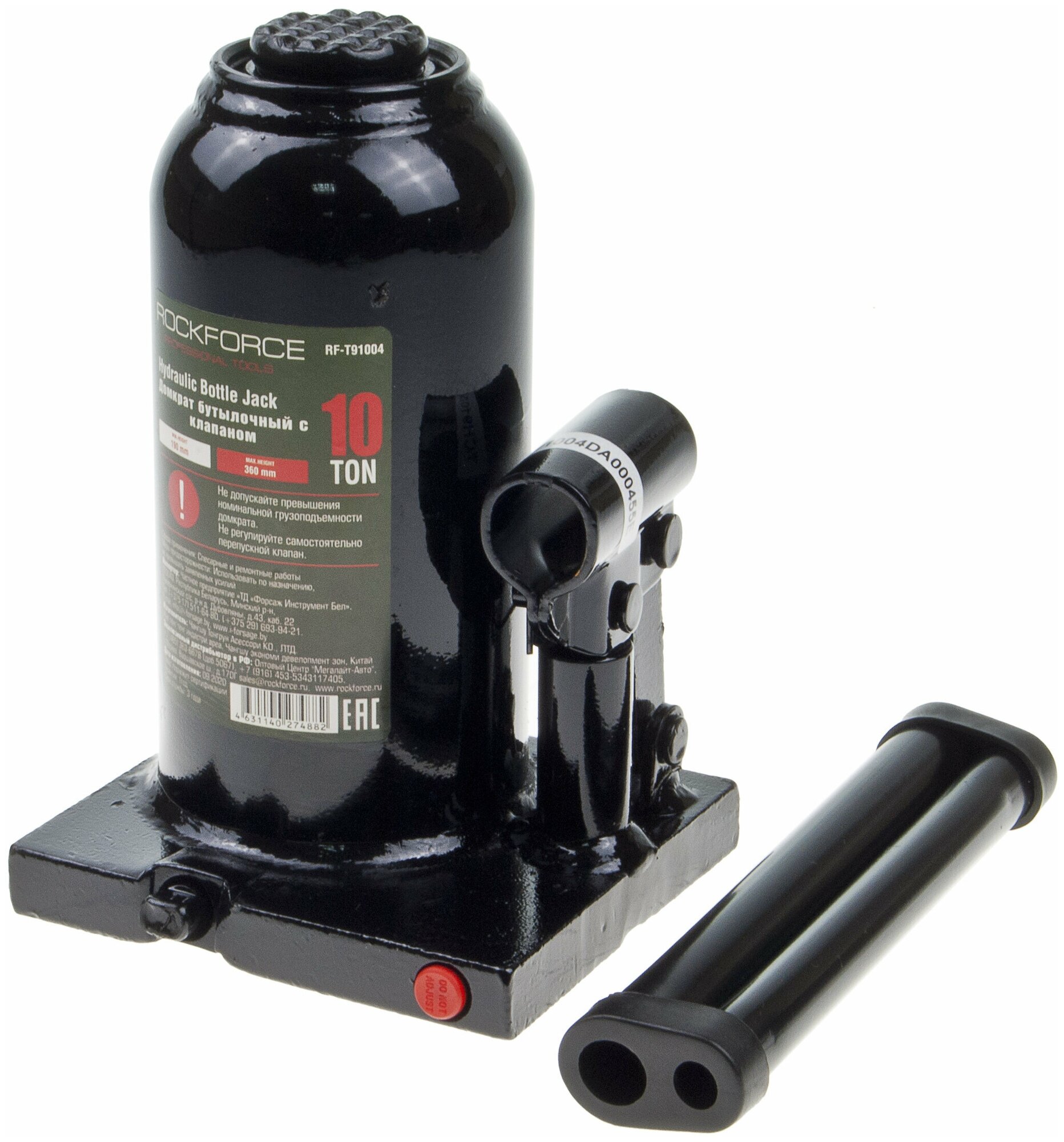 Домкрат Бутылочный 10Т 190-360Мм С Клапаном Rockforce ROCK FORCE арт. RF-T91004EURO