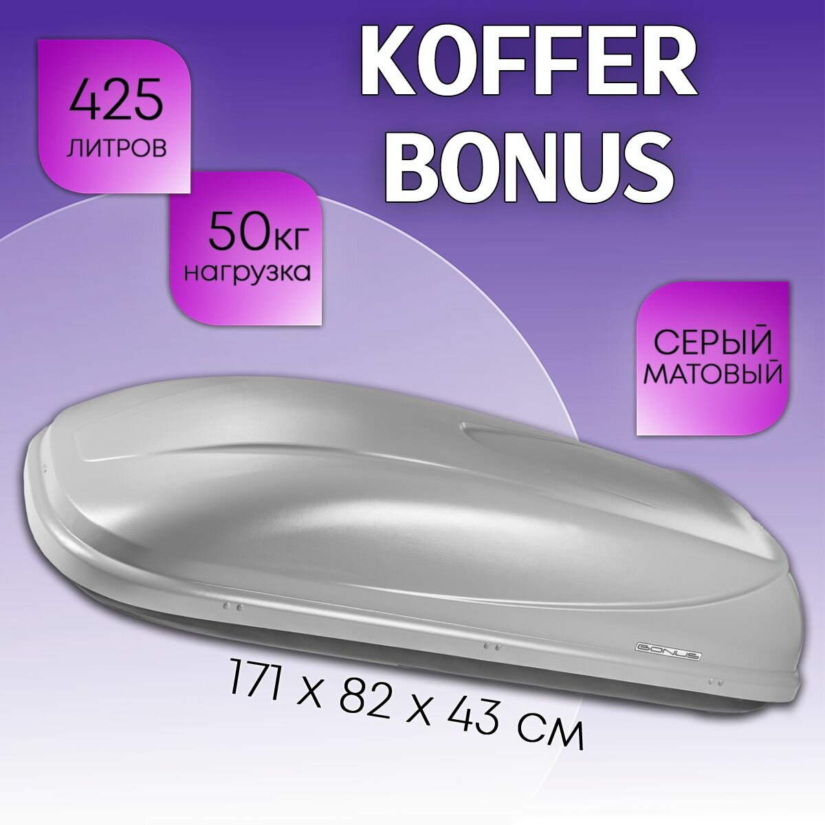 Багажники (аэробоксы) Автобокс Koffer Bonus серый матовый 425л 1710 х 820 х 440