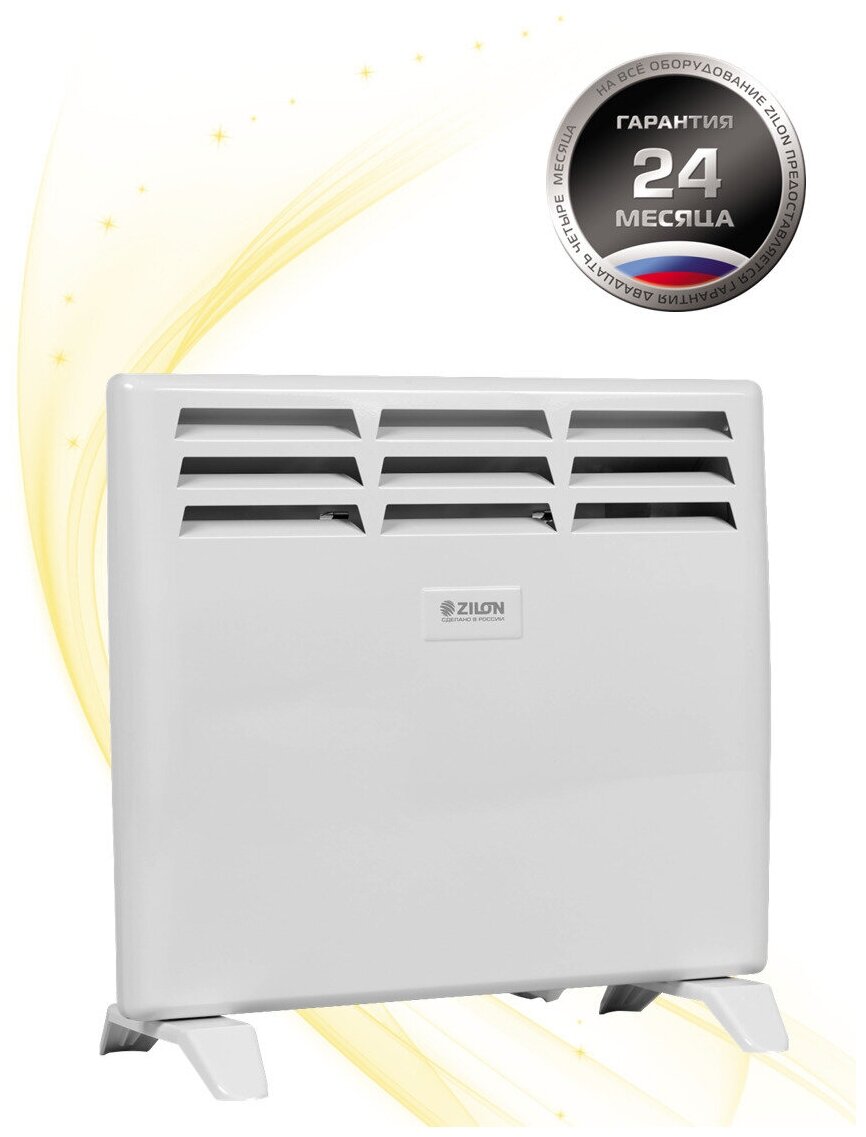 Лучшие цены. Конвектор электрический Zilon ZHC-1000 SR3.0 ECO Электрический конвектор Zilon (Зилон) ZHC-1000 SR3.0 ECO выполнен в современном дизайне и сочетается с любым интерьером. Модель позволяет эффективно обогревать комнату площадью 15 квадратных метров. Прибор имеет два режима мощности, настройка которых осуществляется механической панелью управления. В комплектацию включен набор креплений для настенного и напольного монтажа. Магазины в вашем городе.