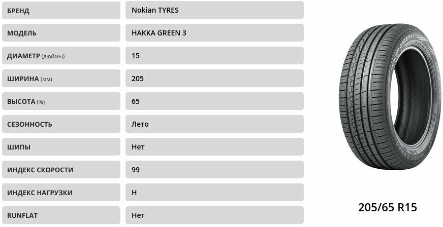 Лучшие цены. Nokian Tyres 205/65/15 H 99 Hakka Green 3 Xl. Магазины в вашем городе.