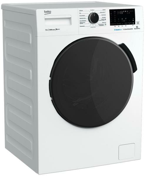 Стиральная машина Beko WSPE7H616W белый корпус, черный люк, фронтальная загрузка до 7.5кг, максимальная скорость отжима 1200об/мин