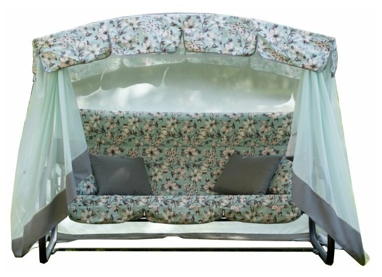 Качели садовые Olsa Турин Премиум FLOWER, каркас черный муар, ткань сер цветы