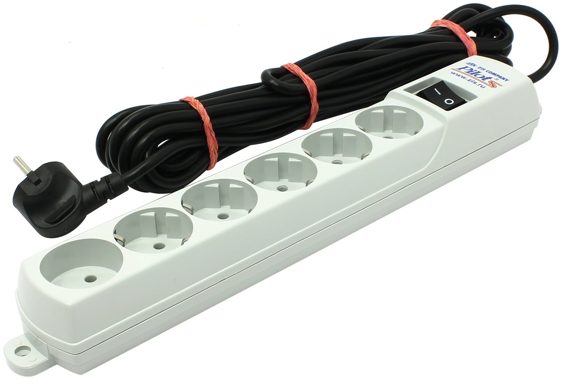 Сетевой фильтр Pilot S, 6 розеток, с/з, 10А / 2200 Вт белый 7 м 375 мм 46 мм 58 мм 6