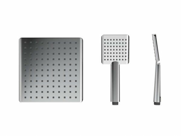 | Комплектация | ручной душ (душевая лейка) / верхний душ (тропический) / смеситель / стойка / штанга / душевой шланг / крепление ручного душа / мыльница |