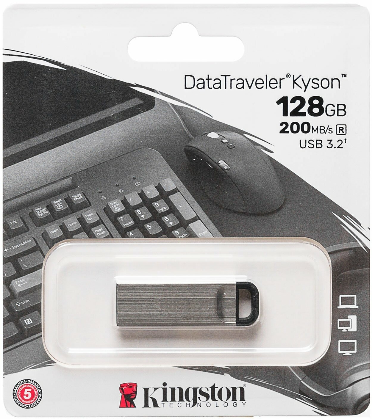 Флешка Kingston DataTraveler Kyson 128 ГБ, 1 шт., серебристый