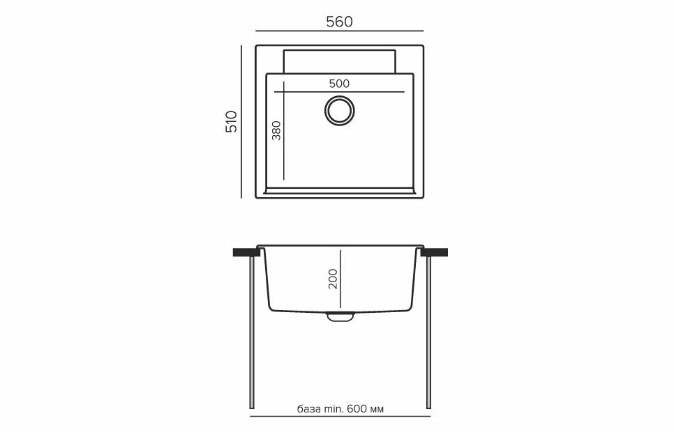 Мойка POLYGRAN, гранит-мрамор, ARGO-560, (510*560*200 мм), черный, сифон и сливная арматура