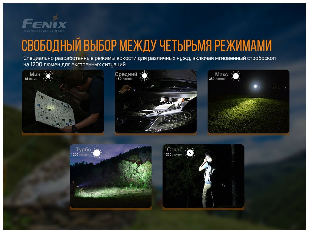 Лучшие цены. Описание Fenix LD32 UVC Cree XHP 35 HI (холодный белый) Фонарь модели Fenix LD32 UVC – прибор с ультрафиолетовым излучением, также его можно применять с обычным светодиодом, в том числе, для активного отдыха. Здесь задействована одна литий-ионная батарея 18650, фонарь генерирует световой поток в 1200 люменов. При этом дистанция действия луча составляет 170 метров. Круглый переключатель позволяет быстро активировать необходимый уровень яркости. Боковые кнопки служат для активации ультрафиолетового освещения. Магазины в вашем городе.