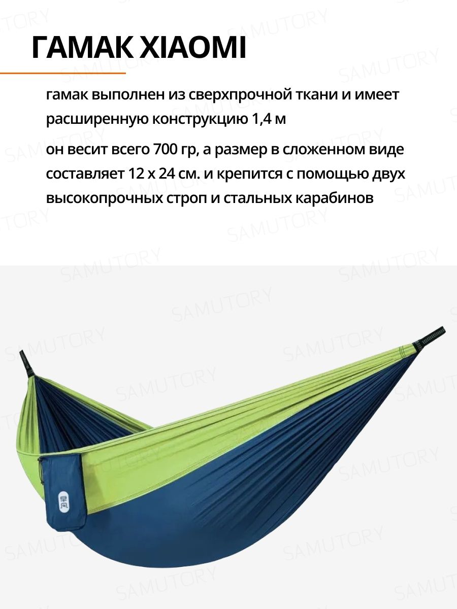 Гамак для дачи, дома, отдыха, туризма подвесной, компактный с чехлом и креплениями ( открытый кемпинг Xiaomi ZaoFeng Parachute Cloth HW070101 Blue )