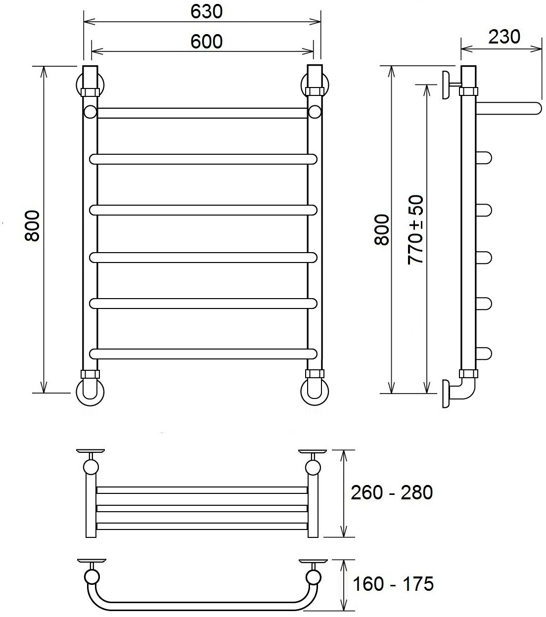 Лучшие цены. Водяной полотенцесушитель Акванерж Скоба с полкой 800x600 предназначен для сушки тканевых изделий и обогрева ванных и душевых комнат. Установка осуществляется к системе отопления или горячего водоснабжения. Изделие изготовлено из пищевой нержавеющей стали марки AISI 304 (08и18Н10) — износостойкого и не подверженного коррозии материала, легко выдерживающего агрессивную среду систем отопления. Магазины в вашем городе.