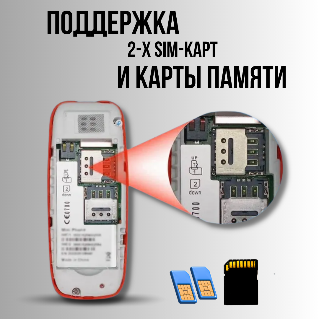 Мобильный мини-телефон с 2-мя СИМ-картами и Bluetooth