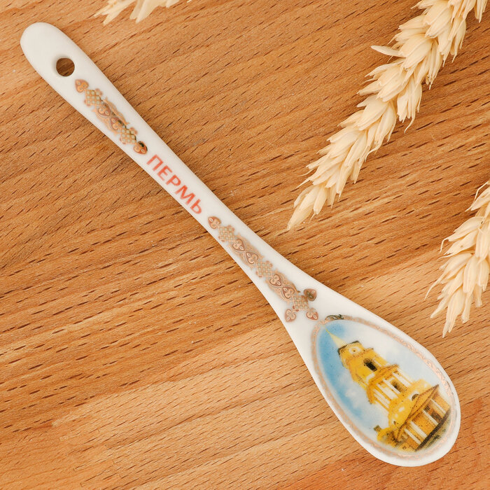 Лучшие цены. Маленькая ложечка из белоснежной керамики со стильным дизайном пригодится во время чаепития. Одного взгляда на неё будет достаточно, чтобы окунуться в воспоминания о пейзажах и достопримечательностях полюбившегося города. На ложечке изображено здание пермского кафедрального Спасо-Преображенского собора – памятника архитектуры XIX века. В нём расположена Пермская государственная художественная галерея — один из крупнейших музеев в Уральском регионе. Магазины в вашем городе.