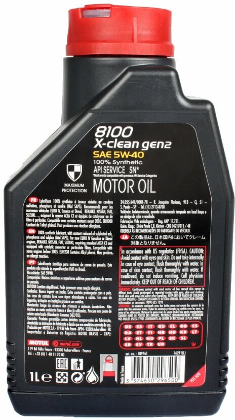 Motul 100% cинтетическое масло 8100 X-clean GEN2 5W40 1л 109761 .