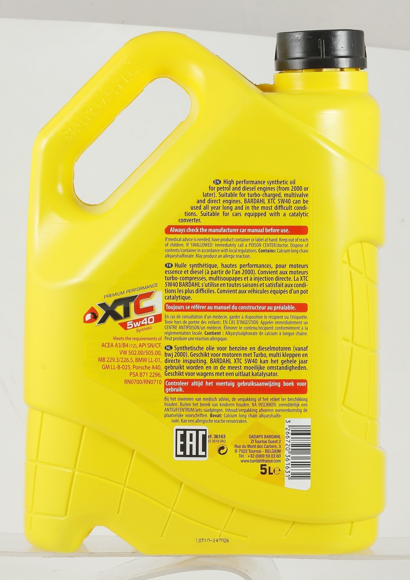 Лучшие цены. Моторное масло Bardahl XTC 5W40, синтетическое, 5 л 36163 – высокопроизводительный продукт, предназначенный для бензиновых и дизельных двигателей. Подходит для моторов с турбонаддувом и без. Масло является всесезонным, выдерживает тяжелые нагрузки и высокие давления. Разрешается использование в автомобилях, оснащенных каталитическим нейтрализатором. Спецификации: VW 502.00/505.00; MB 229.3/226.5; BMW LL-01; GM LL-B-025; PSA B71 2296; RN0700/RN0710; Porsche A40; Fiat 9.55535-M2. Магазины в вашем городе.