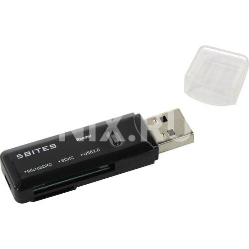 Карт-ридер USB2.0, SD, microSD, TF, SDHC, SDXC, черный, 5bites RE2-100BK
