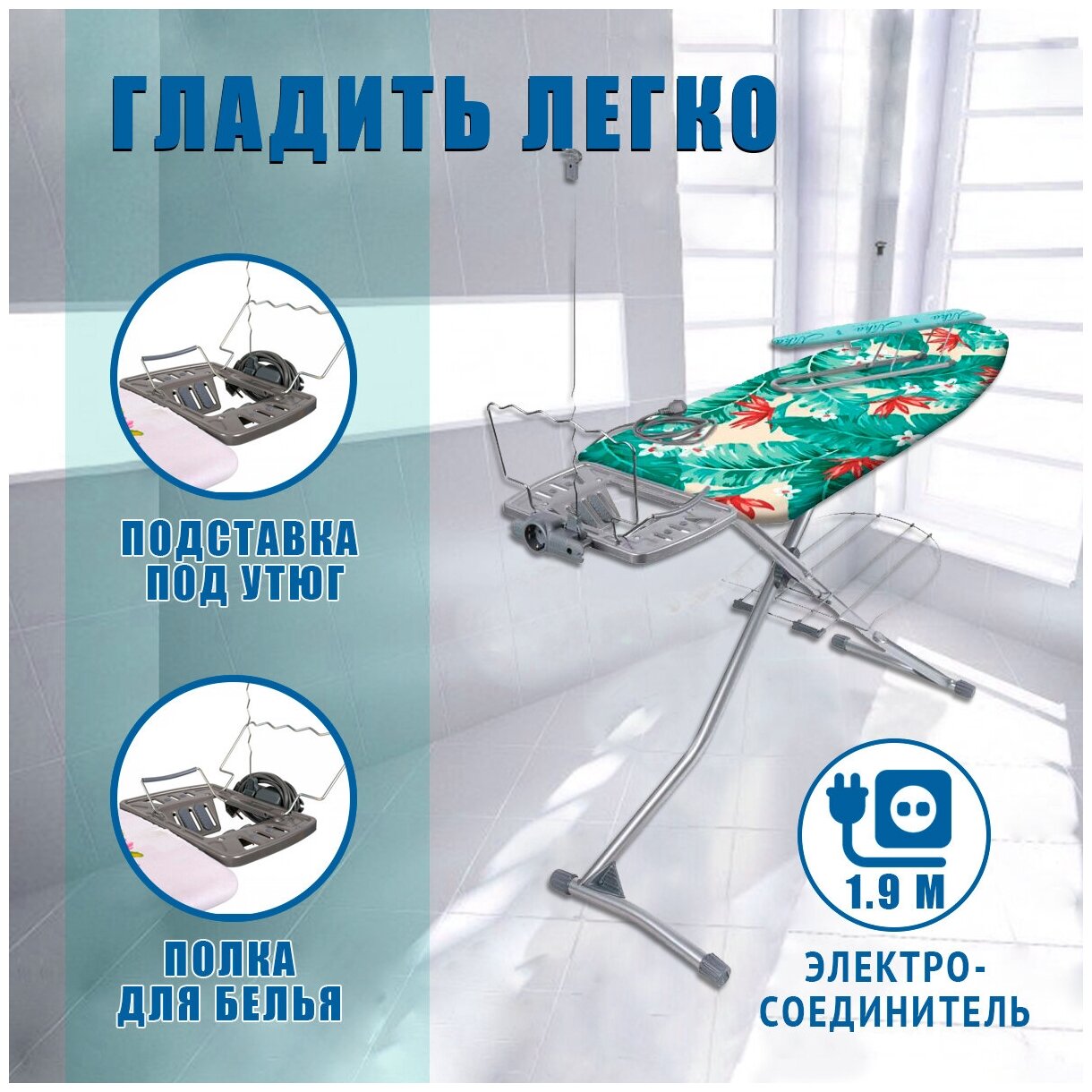 | Функции и возможности | подставка для утюга / регулировка высоты / полка для белья / держатель провода |