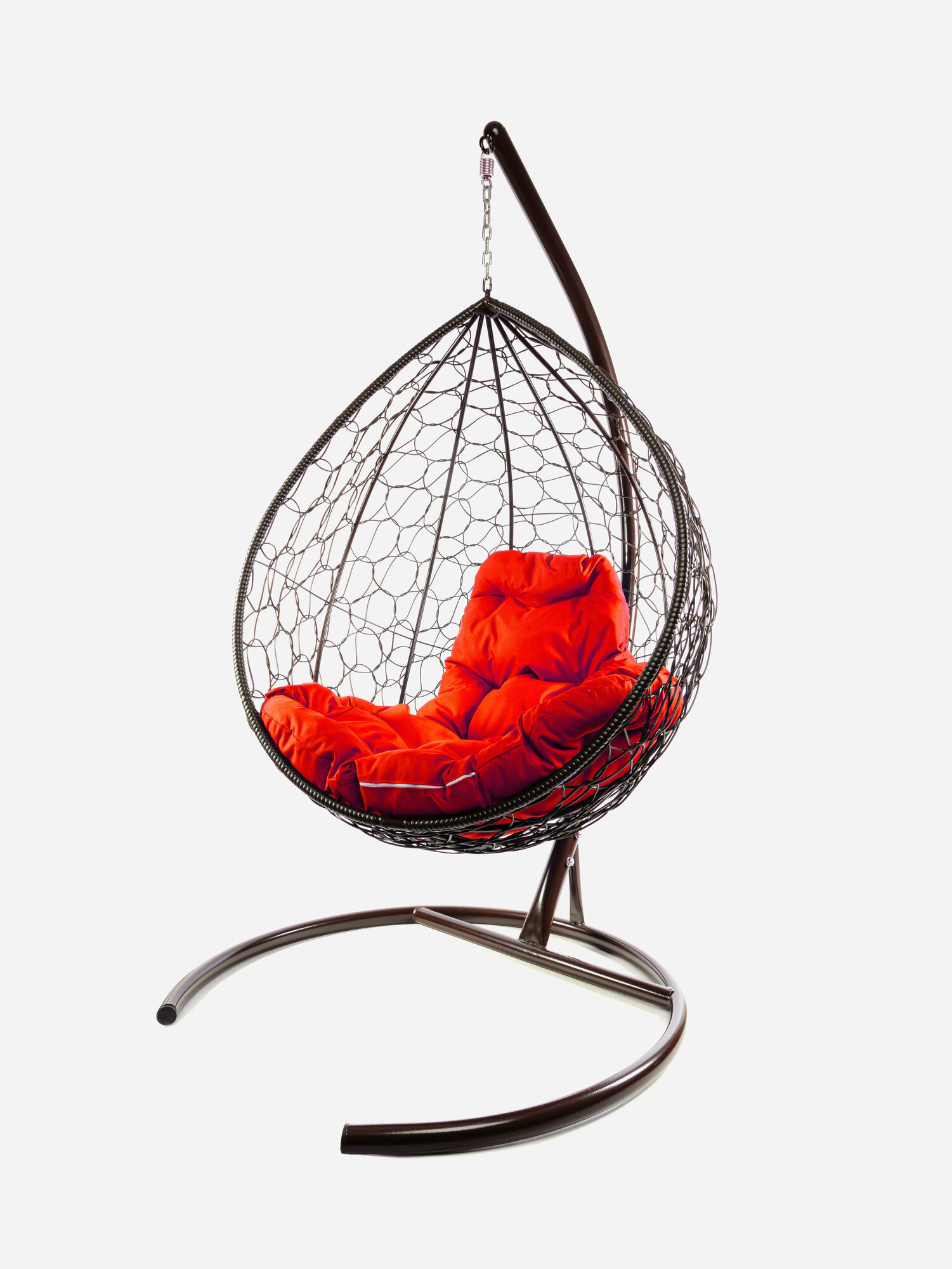 Подвесное кресло капля ротанг коричневое (без стойки), красная подушка
