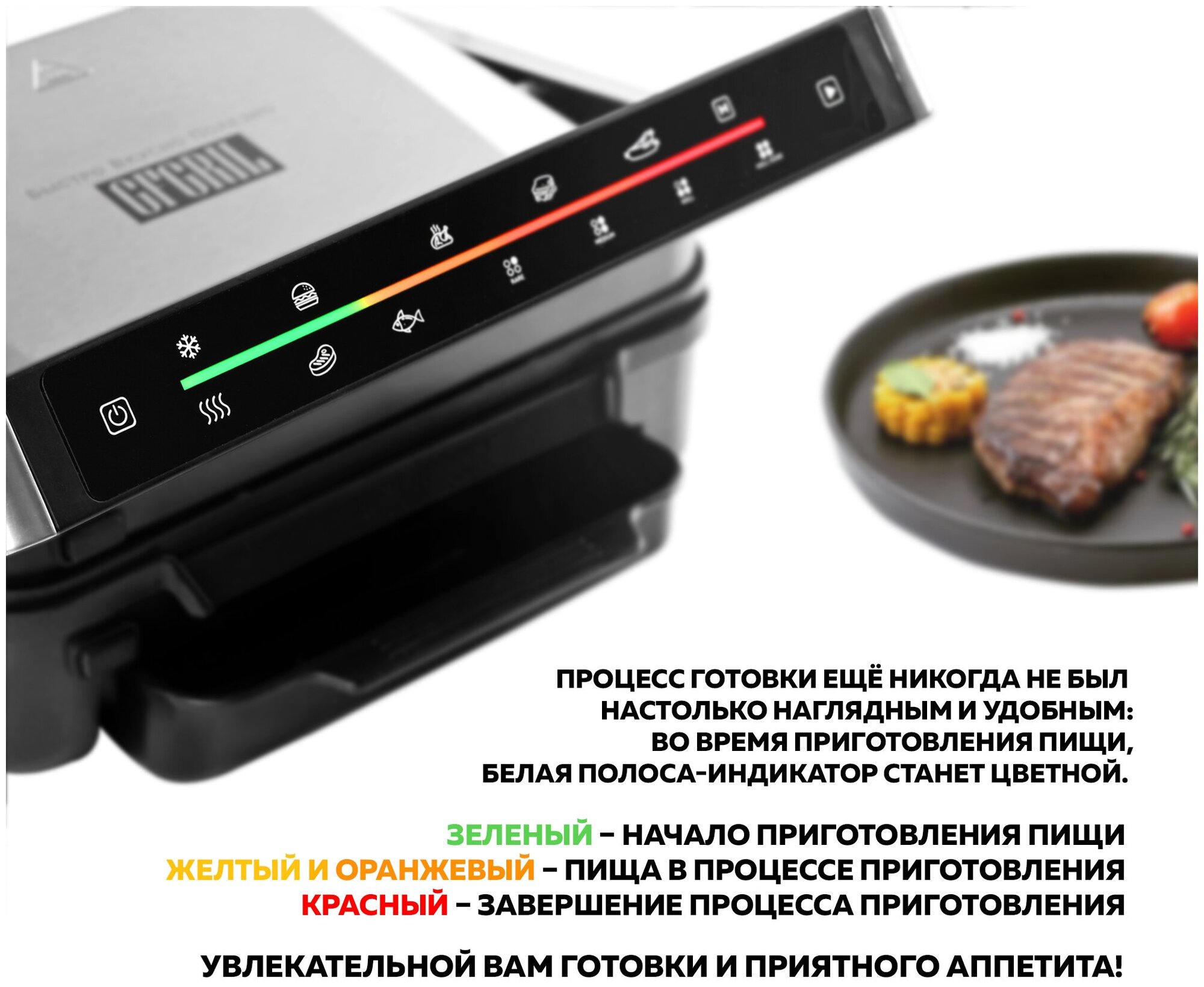 Электрический гриль GF-1500, съемные панели, сенсорное управление, 7 программ, 4 степени прожарки