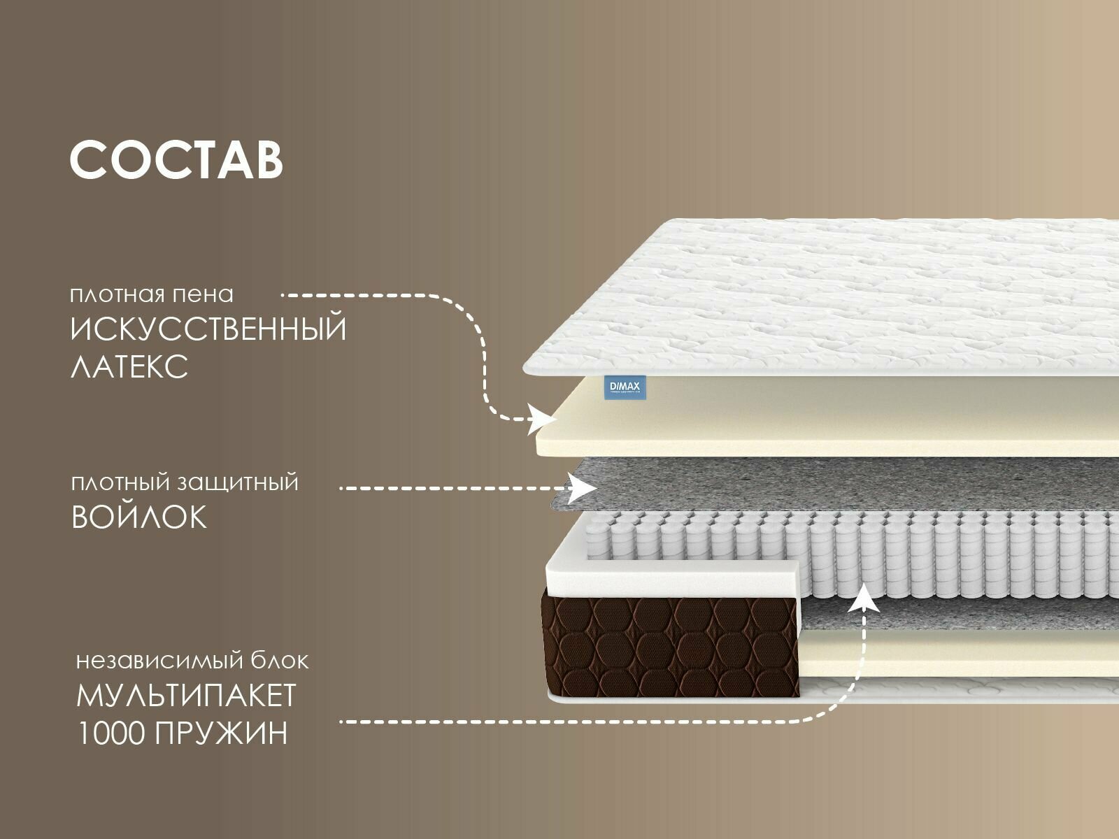 Матрас Dimax Мега Базис Плюс, 95x200 см, пружинный 15 197 ₽ Подробнее