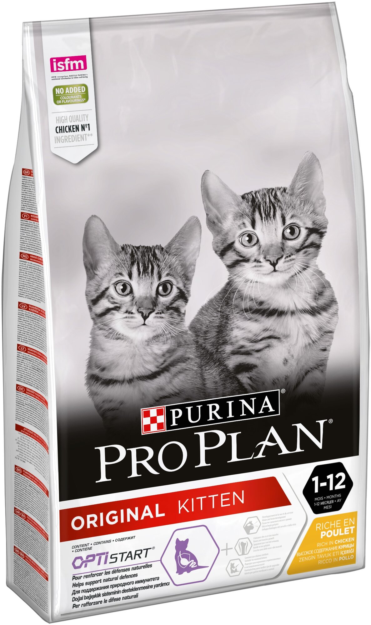 Лучшие цены. Котенку необходимо много калорий, высокобелковое питание и определенная комбинация витаминов и минералов для формирования мускулатуры, роста костей и развития мозга. Все это он раньше получал с молоком матери, поэтому корм для котят должен предоставить малышу все питательные вещества, в которых он нуждается. Эксперты PRO PLAN разработали сухие корма для котят Original Kitten со специальной формулов для здорового развития котенка в течение первого года жизни. Магазины в вашем городе.