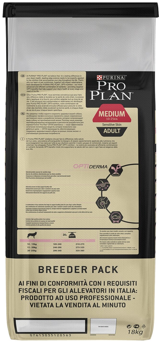 Pro Plan 18 кг Adult Medium Sensitive Skin сухой гипоаллергенный корм для собак Средних пород с чувствительной Кожей (Лосось)