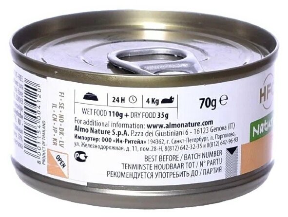 Лучшие цены. Almo Nature Legend HFC Adult Cat Tuna&Shrimps консервы для кошек с тунцом и креветками Натуральные продукты, подходящие даже для потребления человеком. Свежевыловленная морская рыба Настоящее мясо животных свободного выгула (курица, говядина, телятина) – без гормонов и антибиотиков Механическая обработка продуктов, с большой осторожностью, без применения химикатов во избежание потери питательных веществ Консервирование продукта происходит в его собственном бульоне – с целью сохранения питательных веществ и. Магазины в вашем городе.