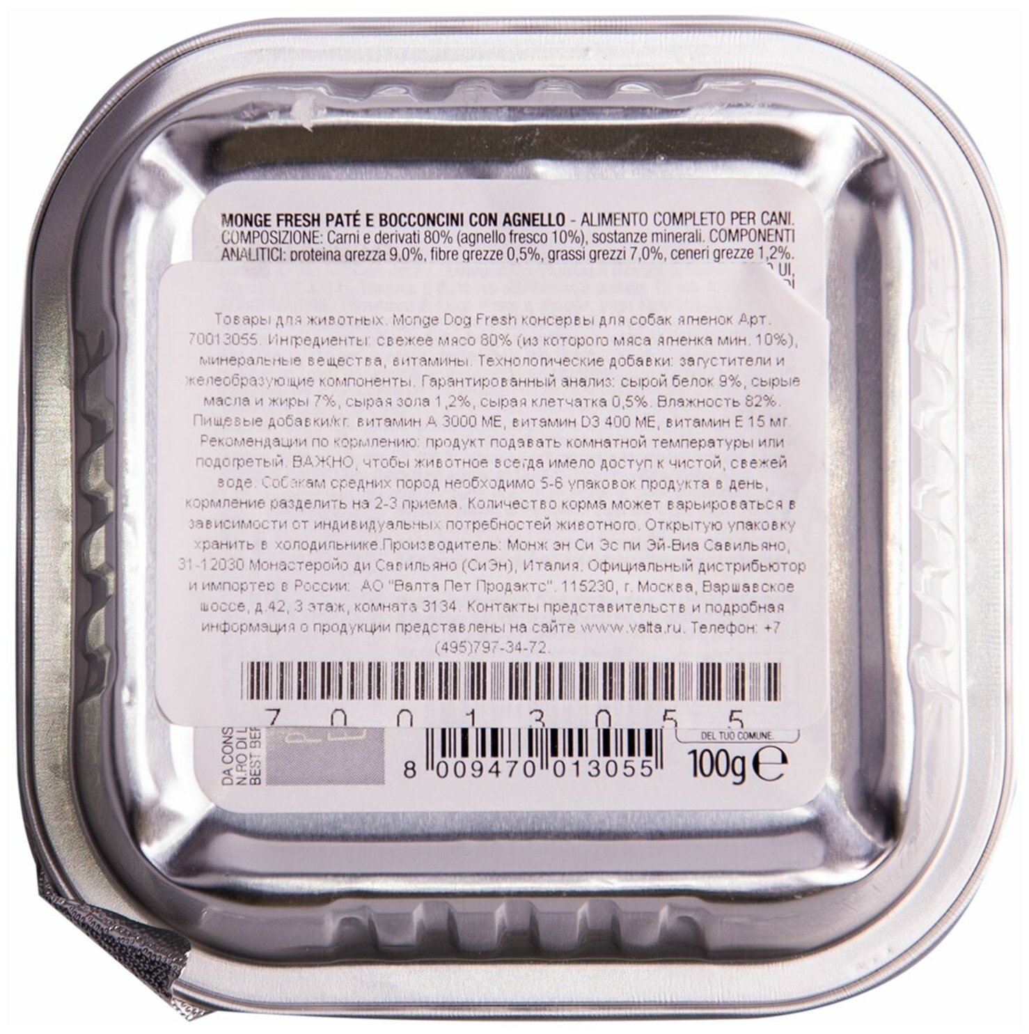 Корм для собак MONGE Fresh ягненок конс. 100г (упаковка - 32 шт)