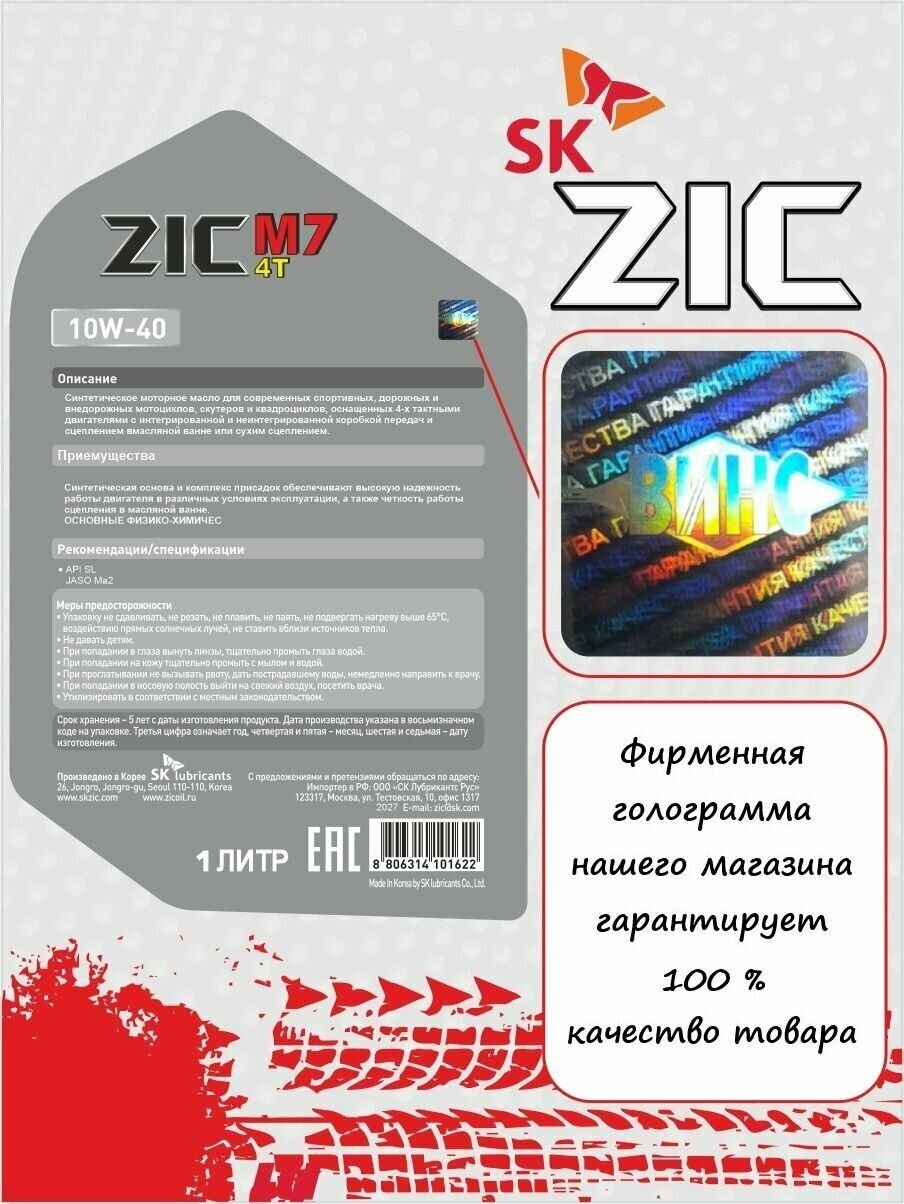 ZIC M7 4T 10w40 SM (синт. для мот. с 4-х такт. двиг.) 1л (1/12)
