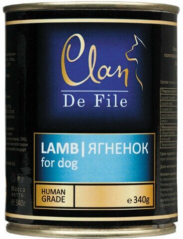 Корм полнорационный консервированный CLAN De File для собак Ягненок, 340гр, 12 шт.