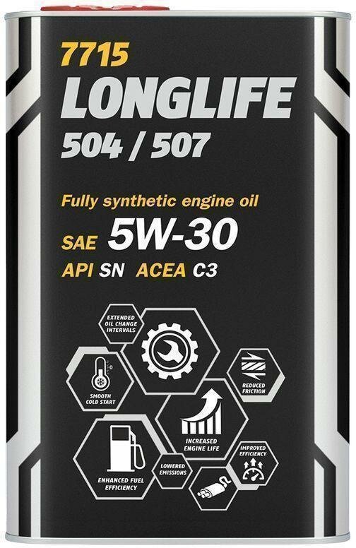 Синтетическое моторное масло Mannol 7715 Longlife 504/507 5W-30, 1 л, 1 кг, 1 шт