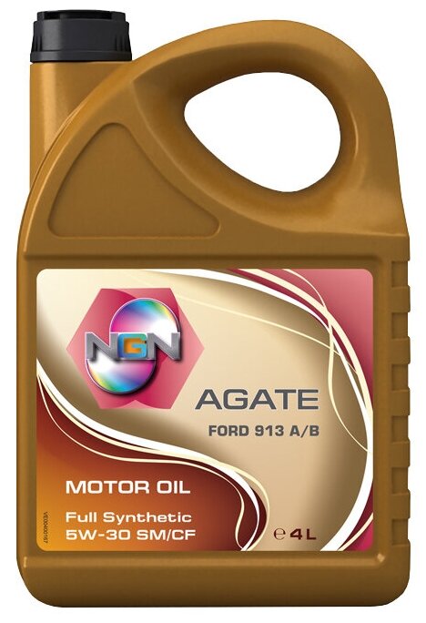 Лучшие цены. Моторное масло NGN 5W-30 SM/CF AGATE 4 л V172085324 - специальное, полностью синтетическое высококачественное всесезонное энергосберегающее масло. Разработано для новейших бензиновых и дизельных двигателей автомобилей Ford, Mazda и Jaguar, отвечающих требованиям Euro IV. Не только обеспечивает хорошую защиту от износа, но также защищает от ржавчины и окисления. Обеспечивает устойчивую масляную пленку при холодном старте и высокую стабильность при тяжелых эксплуатационных условиях. Магазины в вашем городе.