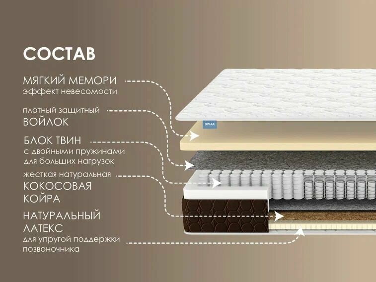 Матрас Dimax Твин Медиум Мемо 195х200 78 210 ₽ Подробнее