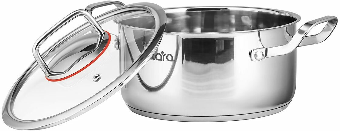 Лучшие цены. Кастрюли LARA серии «Prima» в современном дизайне придутся по душе любой хозяйке. На крышке есть силиконовый ободок красного цвета для повышенной фиксации ручки – это придает изделию оригинальный внешний вид и делает его стильным элементом на кухне. Внутренняя мерная шкала. Кастрюля выполнена из высокоуглеродистой нержавеющей стали марки AISI201 с двусторонней зеркальной полировкой. Магазины в вашем городе.