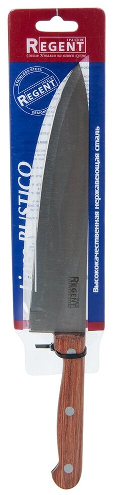 Лучшие цены. Нож разделочный Regent Rustico 205/320 мм 93-WH3-1. Нож разделочный 93-WH3-1 станет отличным помощником для любой хозяйки. Нож выполнен из высококачественной стали, которая обладает отличной износостойкостью и остротой. Не подвержен коррозии, деформации, устойчив к сколам, царапинам и трещенам. 93-WH3-1 сочетает в себе многофункциональность, легкость в использовании и оригинальный дизайн. Нож имеет массивное широкое лезвие и острую режущую кромку. Магазины в вашем городе.